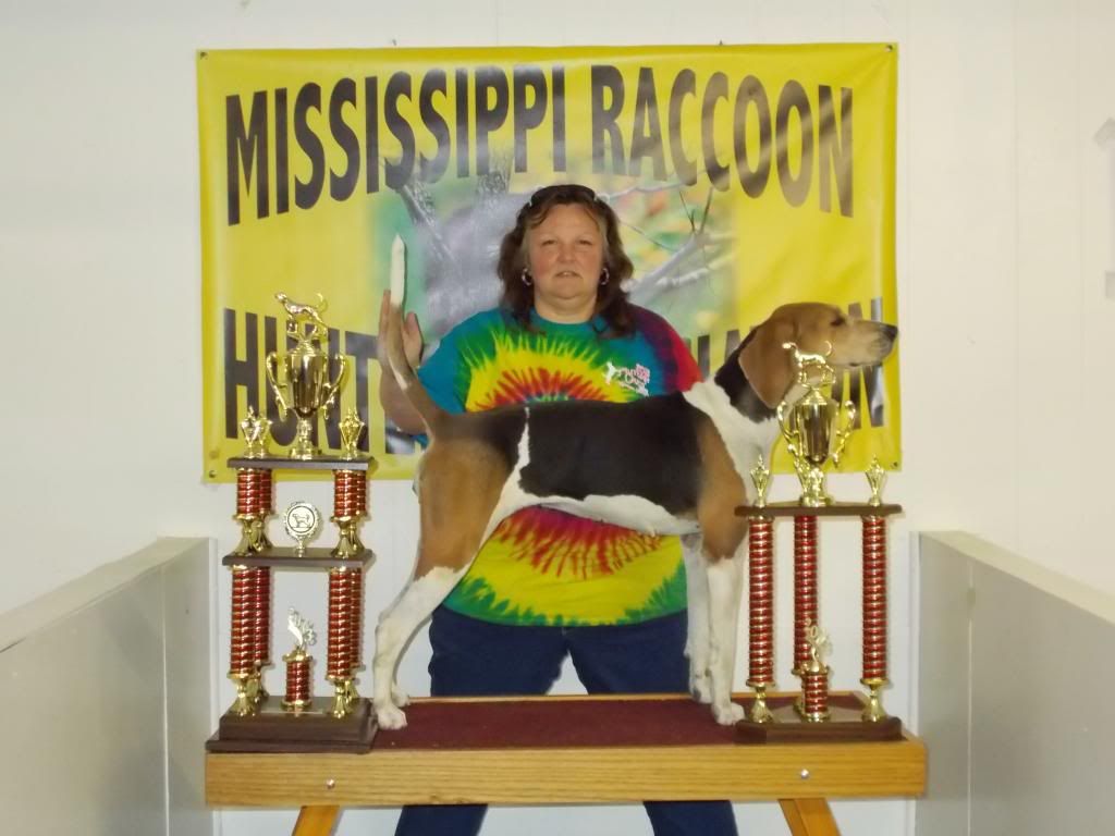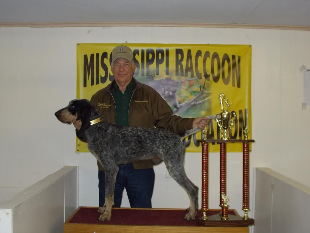 Friday hunt, 41 dogs Purina cast Chalk Eyes, Jerry Carter, blue,225grand nite winner: High Dollar Deacon, Gaylan Ryals, w, 575+; ch winner: Main Street Blue Man, Don Gregg, Eng. ,225+;reg. 1st Blackberry Jam, Jr. Steelman, B&t, 500+; 2nd Wildnite Whip, Allen Anthony, bluetick, 175+. Bench show,23 dogs grch male: Billy Graham, Vallen Nelson; grch fm Deepwood Dollie, Amelia Wooten or Sabrina Smith. ch male :Nichols Cr. Revelee, David Morgan. Ch fm :Sunset Celebration.Madison Fancher.best male: Outlaw Diego, Bill Fairburn, best fm: Heart Of Dixie, Marion Fairburn.