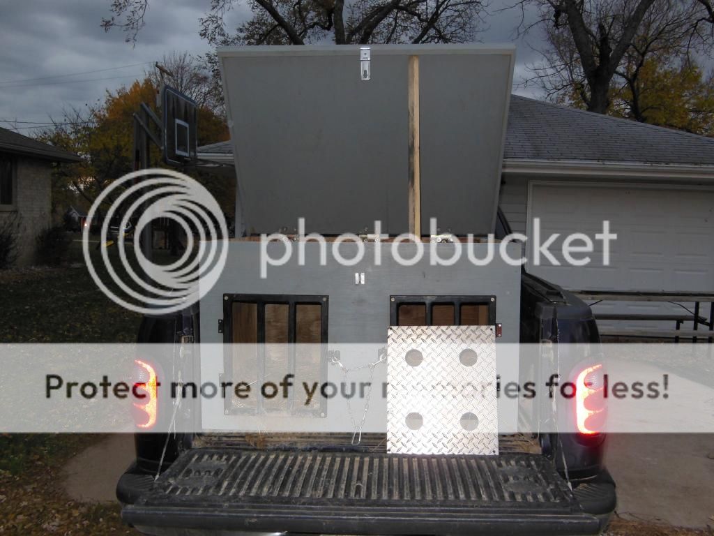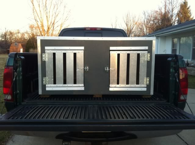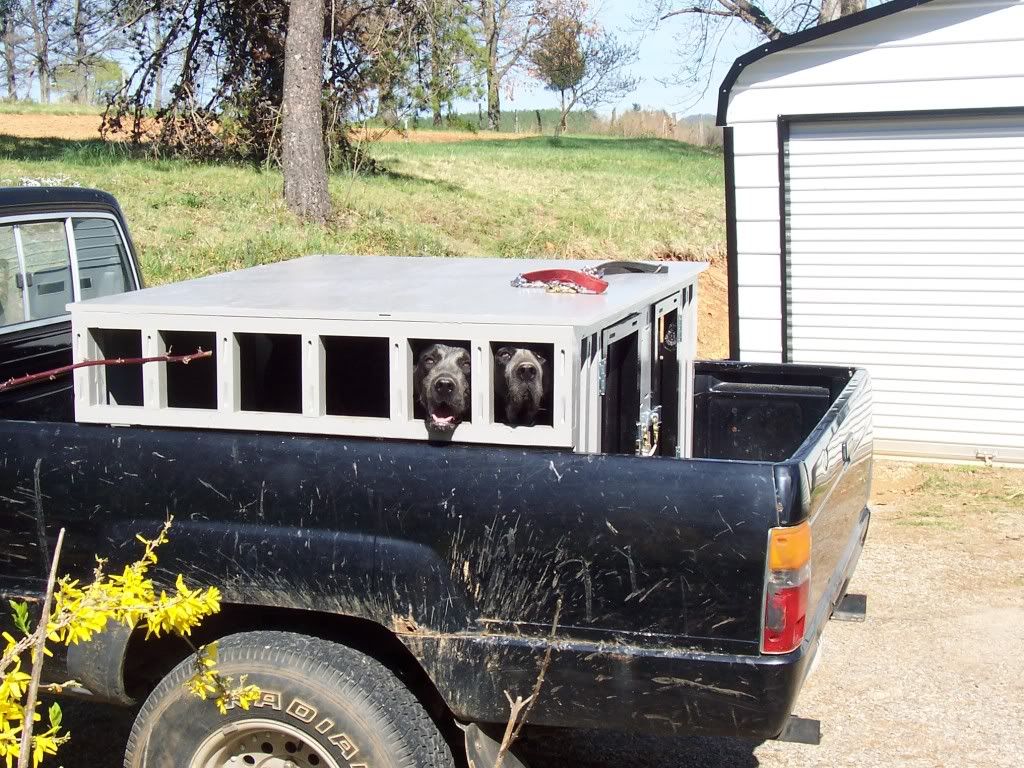 i got a mullins dog box but think im gonna have to build me a big 1 with a extra large door lol i got a young red dog that is scared to death of the truck box takes 2 of us to stuff him in the box when i go by myself i just open the passanger door he jump up on the seat and looks out the winsheild and is happy don't move a muscle till you open the door and let him out