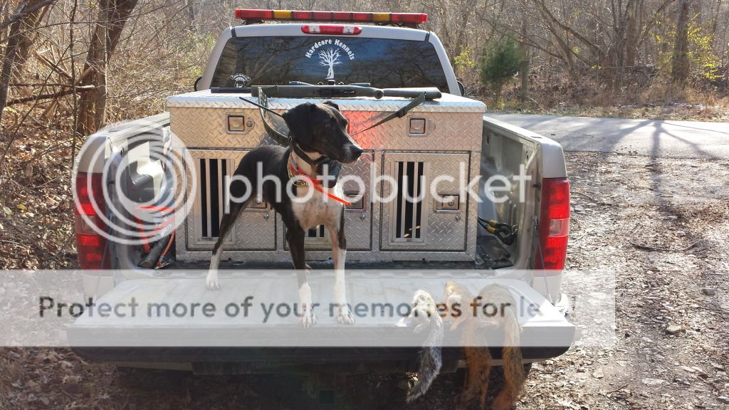 Took Sissy out for a spin on some new ground today. Its steep but loaded with squirrels and coon. Was able to get 3 down to her then I got Jinx out. She was rockin but had several timber out that I didn't get a shot at. Was only able to get 2 out to her and quit early so could get some things taking care of before my trip to LBL tomorrow.