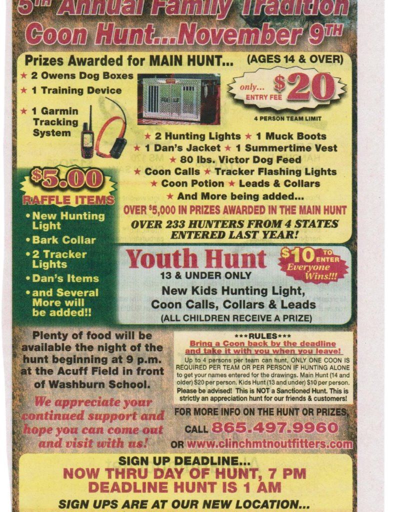 5TH ANNUAL COON HUNT AND CUSTOMER APPRECIATION SALE!