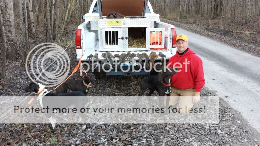 Met up with Bo Rabbit today for a little squirrel hunt. Man did it start out ROUGH!!! Trees were 800-900yds deeps and we walked to a bunch of Den Trees. Stopped to eat lunch around Noon and had only killed 2 squirrels. But after lunch things changed and changed quick. Around 3pm dogs started split treeing with the MEAT. We finished the day at 4:30 with our 2 Man Limit. I was really pleased with Sissy (her 1st hunt back after having pups) wanted to kill Jinx up till the point squirrels started moving, and Bo Rabbit's gyp Anna...well she is one BAD LITTLE UNIT!!! That Black Back Bomb Shell was on fire and pull on one heck of a show.