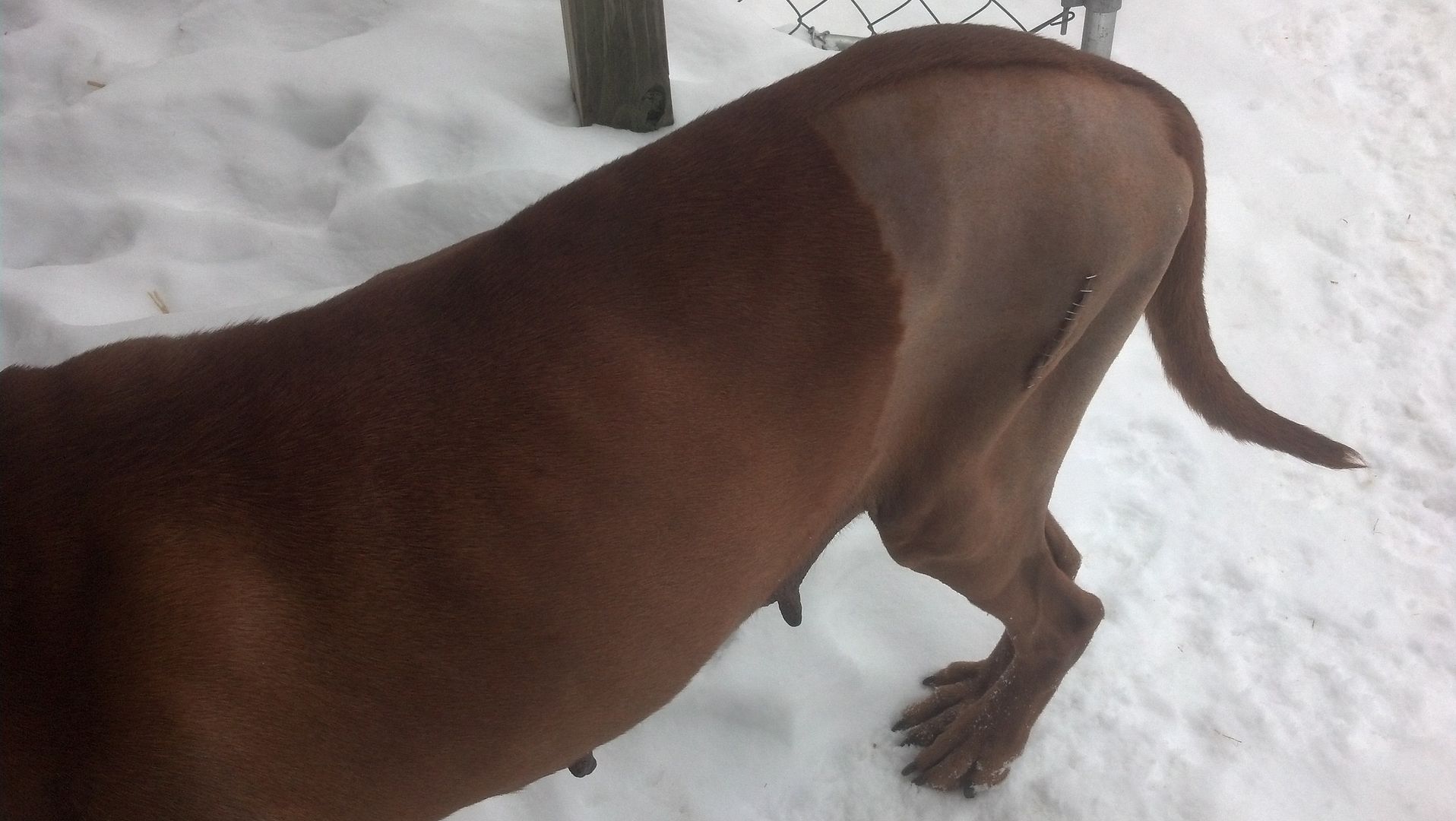 Gr.Nt.Ch.-PKC Ch. Ky Moonlight Breanna a few days after having most of her hip removed.