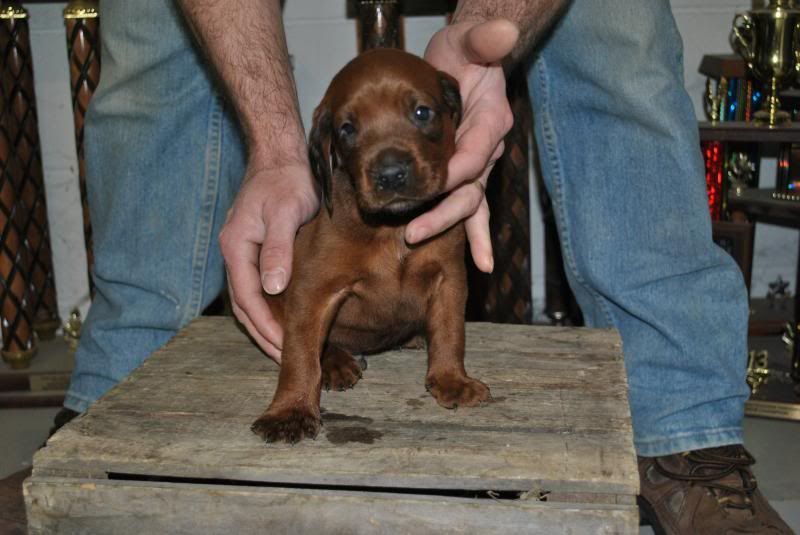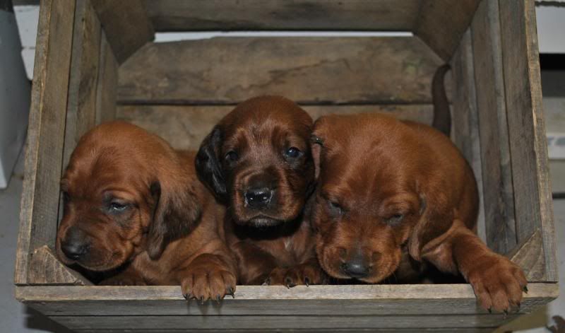 They are eating food some now and we are still giving them milk too. I won't let them go until their 8 weeks old though. This gives me time to get them their first shots, wormed and most importantly just so their bigger and stonger and ready to take being transported and colder weather as well. I also need to wait for their reg papers to come back too. It will be another 3 weeks anyhow, John. Their not quite 5 weeks old yet.