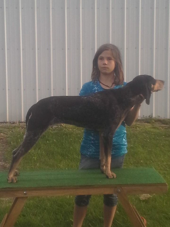 Ch Pr Rynes Blue Treeing Katie is a 3yr female that my daughter bought and made a show champion out of her. Now she would like to sell her because she has a puppy to start putting in the shows next year and has another show champion to put in the shows. Katie hasn't seen much hunting time with use. She was brought in for a show hound. She has hunted some but not finished by no means. Very green yet. Sire is pr ryans big maple blue habit and dam is pr Sharon little girl jill. Asking $250 for her and she is located in WI.