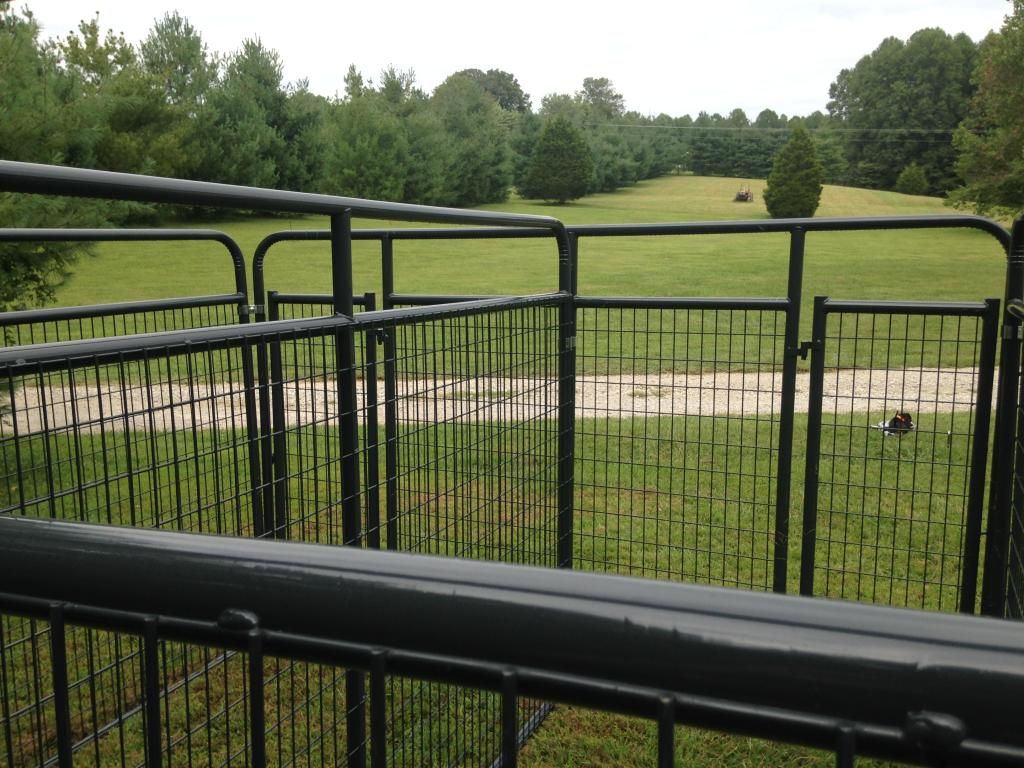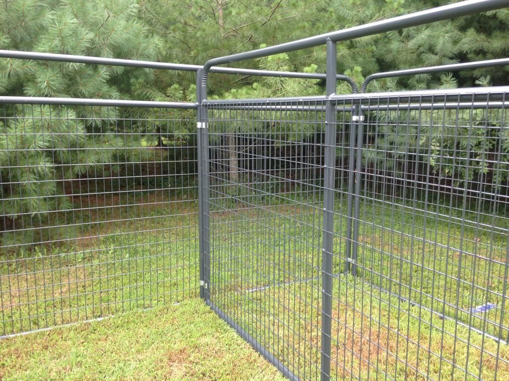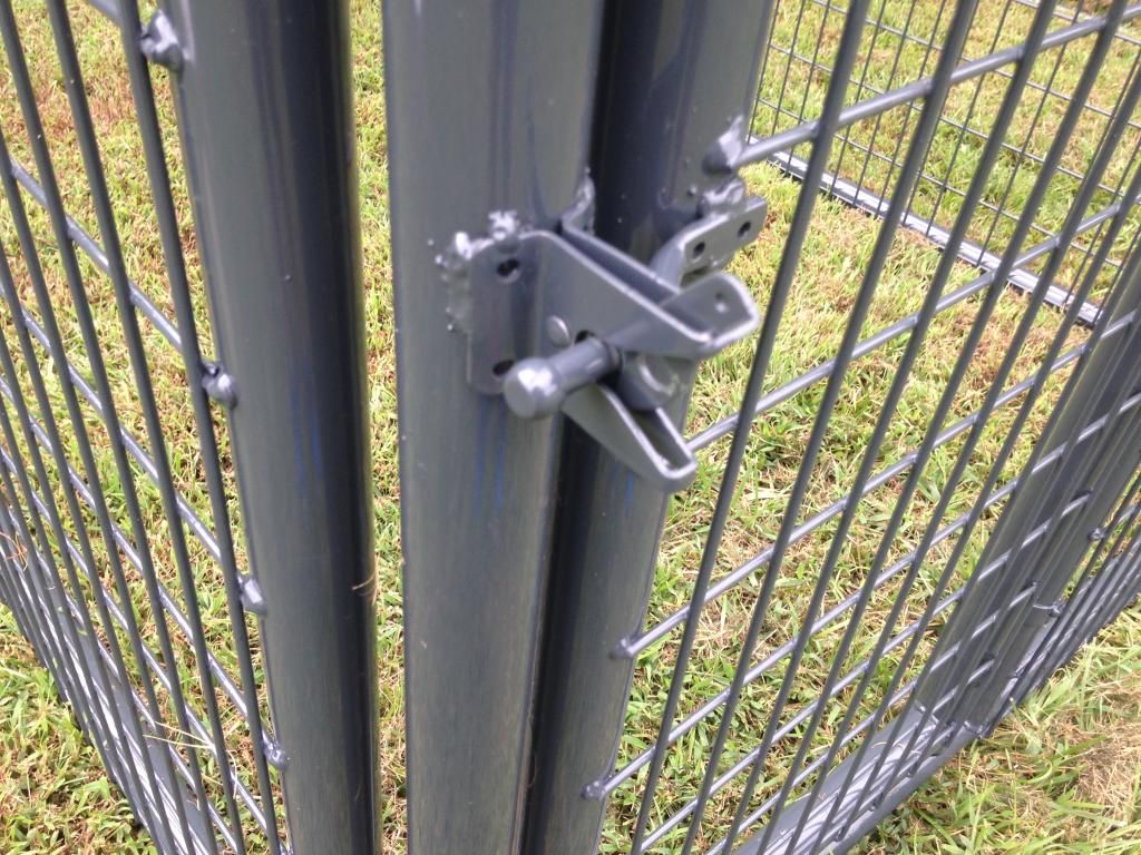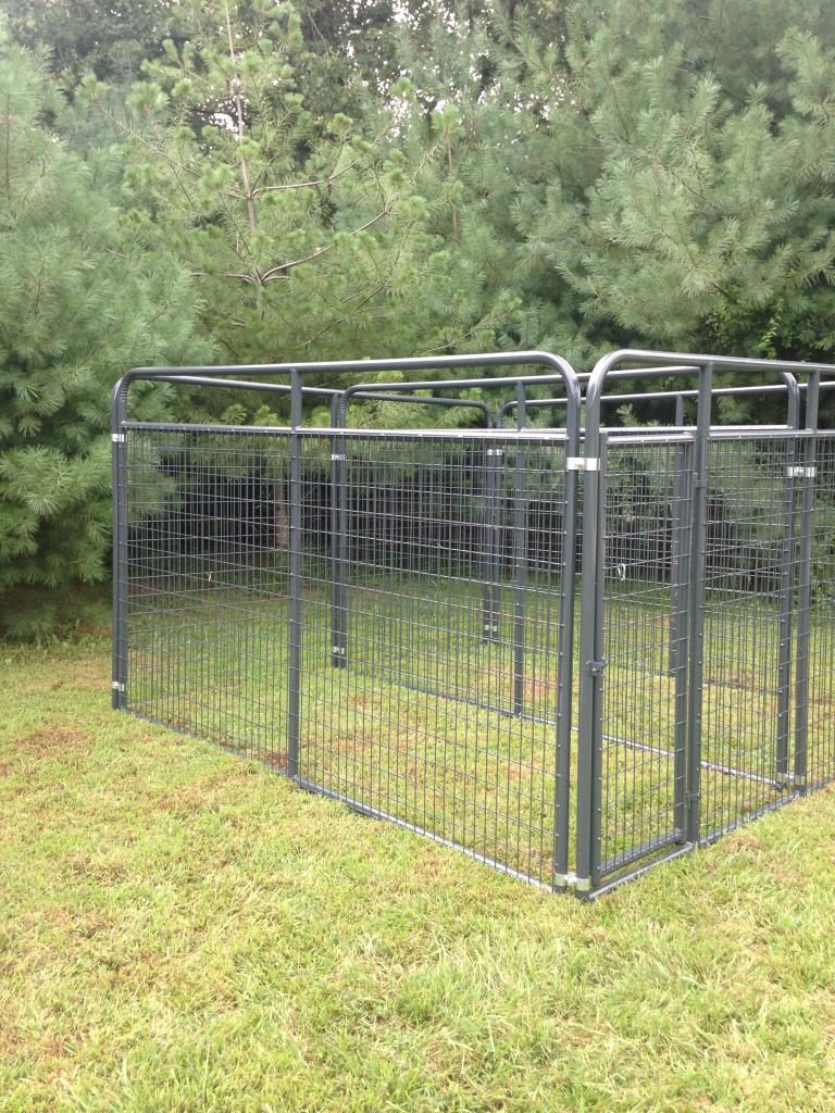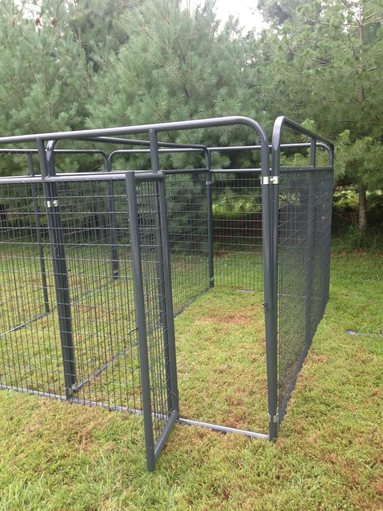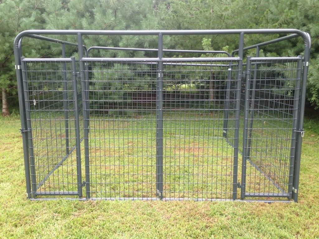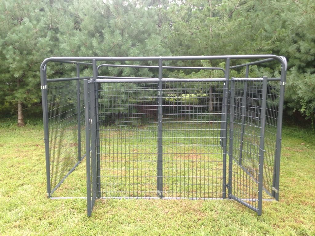 We manufacture high quality dog pens for the avid houndsmen. They are made out of 1 3/4 inch black steel tubing with 4 gauge 2x4 square wire panels. They are then painted with a lead free battleship gray paint, also can be ordered in galvanized. Below is a picture of a 10x10x6 with a divided and 2 doors. The pen shown had the slam latch we can make either one for. Also come with galvanized clamps. If interested please call/text 606-706-7879. Can deliver any where in the U.S.
