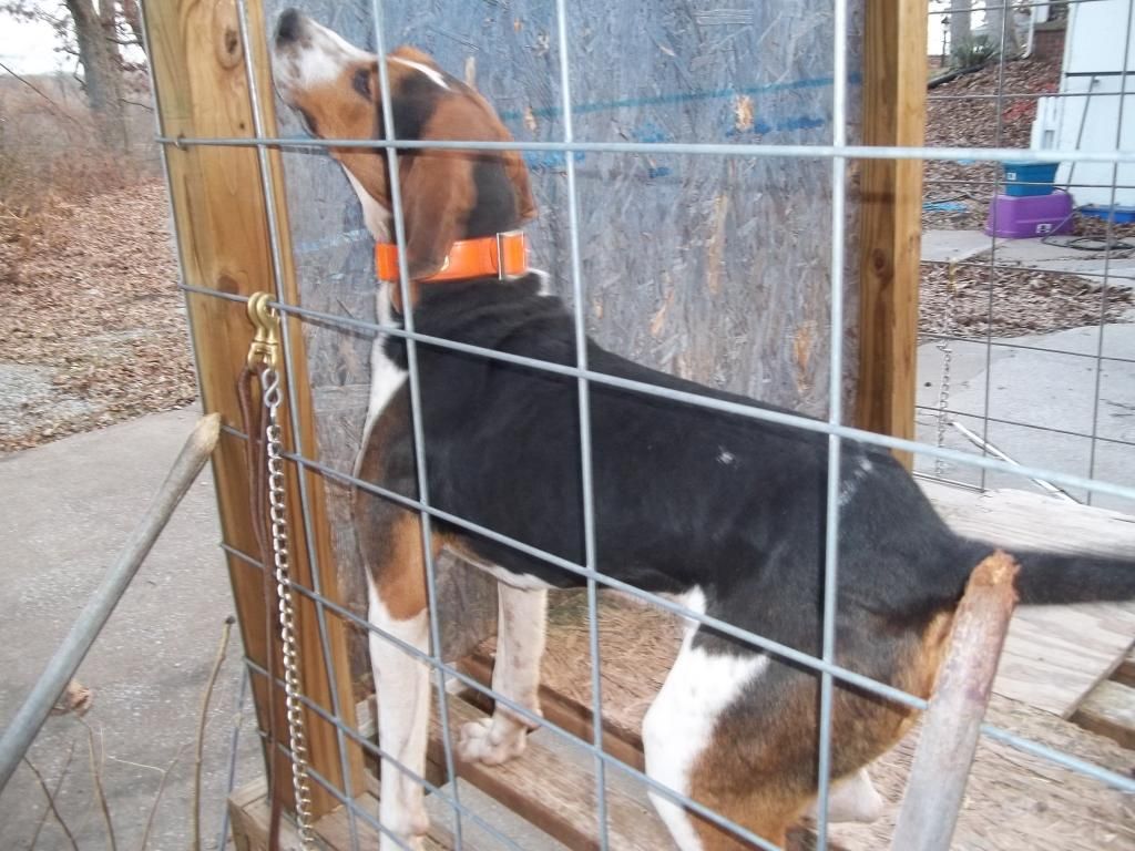 Dam is Trixie which is out of Frankie. Hunts the 2 yr olds this spring. Has a UKC 1st. Never been in a PKC hunt to my knowledge. Theres nothing wrong with his eye it was just the camera flash making it look funny. Bawl on ground good locates and chop on tree. Needs finishing touches put on him but can compete in a cast today. Been hunted almost exclusively by himself the last 30 days. Reason for selling is I like one that hunts half - and he isn't that kind of dog. Nothing to hide come try him. Can be shown in Hannibal MO or Pleasant Hill, ILL about any night with a little notice. About an hour and a half north of St. Louis. Will show him anyway you want to see him. If someone is looking for a pup that most the hard work is done and you can take by himself and tree coons here he is. $1500. 1-573-406-9956 or 1-217-779-2941