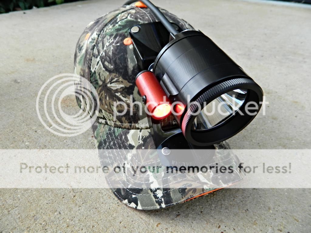 Here is a picture of the prototype mounted on a hard shell soft cap. Before we finalize the product, we are soliciting your comments and recommendations for change. Weight of the entire light is 19-22 ounces depending on the cap selected. Pricing will be $235.00 with one color module of your choice. If you prefer the module can be made with bright white, a bright white module produces excellent light for walking and should be ideal during the winter months - lets face it, as most experienced coon hunters will tell you coons very seldom look in the winter regardless of the color - they'll be tucked tight on a limb looking straight up the tree. A total of 4 different modules are available, white, red, green, and amber other colors available on special request. We also have 2 different beam angles, the picture of red below is 18 degrees, we also have a beam angle of 40 degrees for a wider angle. This makes a total of 8 different possibilities for the color module, Below are some pictures, I would appreciate your comments and recommendations for change. You can contact us at 731-632-0489 Thanks for looking.