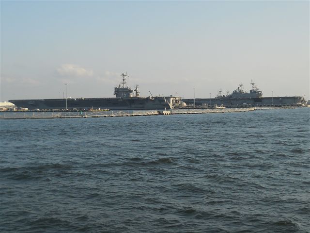 Uss Harry S. Truman CVN-75 and the USS Wasp in the back ground. Ships of the Greatest Navy in the World.
