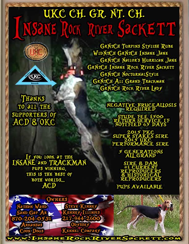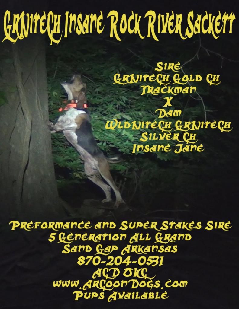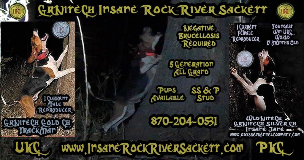 UKC Forums : Powered by vBulletin version 2.3.0 UKC Forums > UKC Free Classifieds > Coonhound Classifieds > Treeing Walkers: Dogs and Puppies For Sale > GrNiteCh Insane Rock River Sackett pups Trackman/Insane Jane