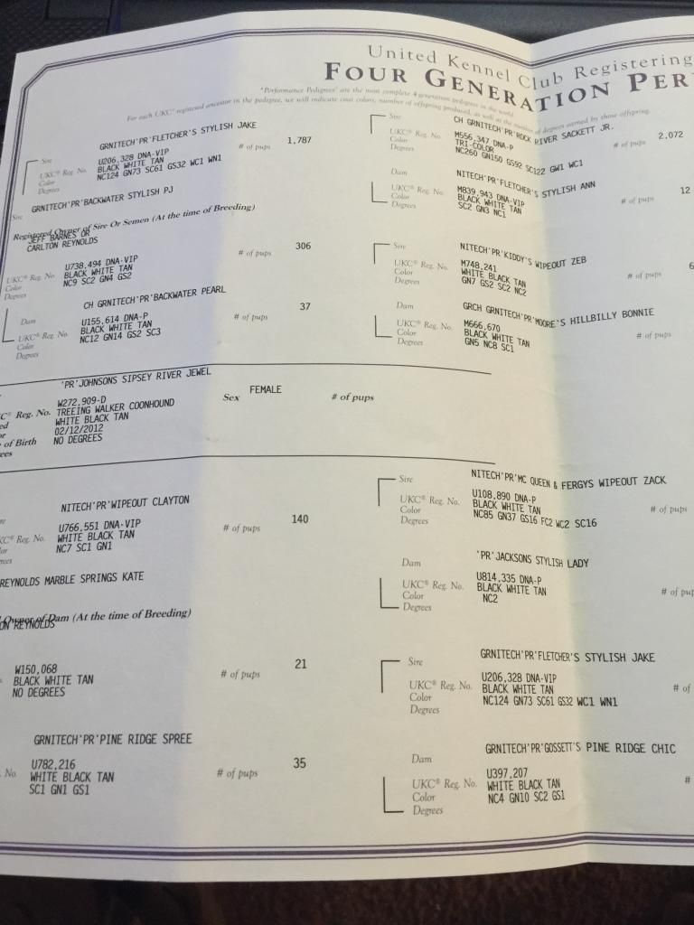 The pups were born October 20, 2014. They are ready to go and have had their shots and been wormed. The pups are out of Insane Cain and Wipeout breed. Both of the parents are good coondogs. They are $200 I am available anytime to show you them just call 205-213-3683. Below are pictures of their parents pedigree, the puppies, and pictures of some of them playing in the yard. They are UKC and PKC SS.