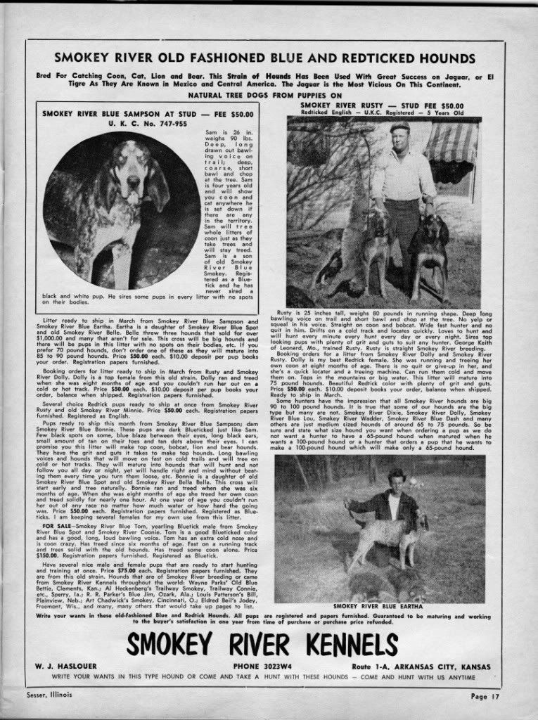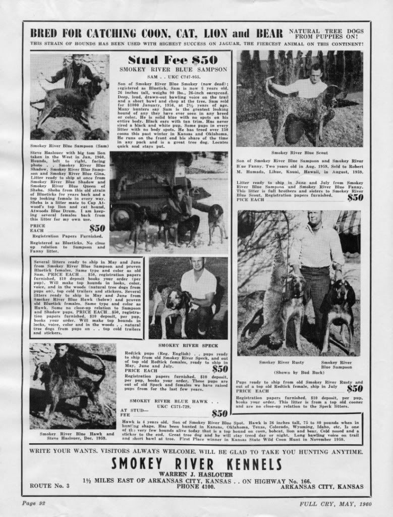 I to remember seeing his ads a young lad and dreaming of owning some honest to goodness bluetick hounds like the ones in the ad.