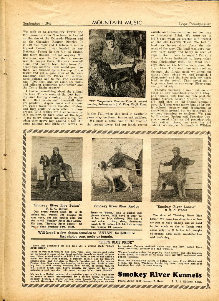 I can relate to your thoughts there. In 1959 I got my first hound... just happened to be a bluetick.. pretty sorry looking too! I seen all those fine ads in the Mountain Music and Full Cry's from the Smokey River Kennels
