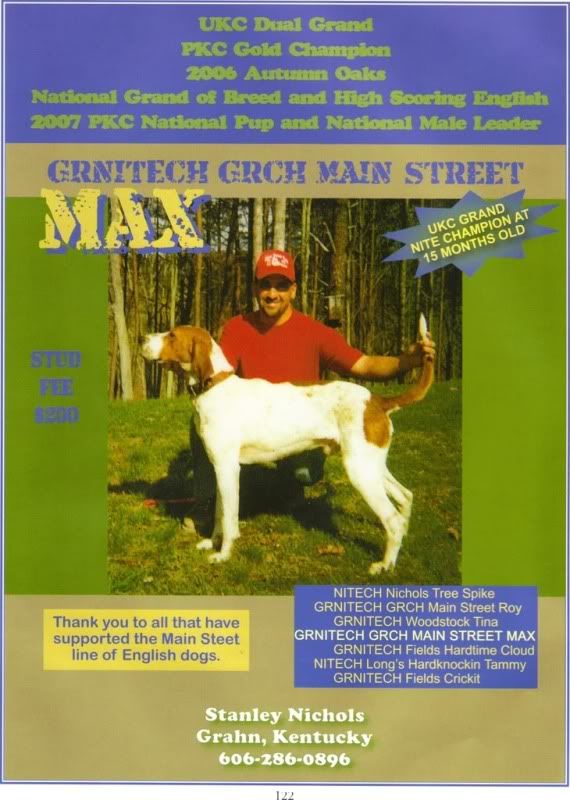 I own two off Max Nitech Main Street Ramblin Rambo and Grnitech Main Street Hooker...Rambos a kick dirt in your eyes get struck and be off by himself Deadly accurate most def a hide dog...Hookers action packed 90% silent and looking to get wooded she trees coon like a cur dog! Max is the real McCoy and throwing some real nice hounds ive hunted with a bunch off max be nice to see a few more nice females bred to max wouldn't think twice about putting a third one in my kennel!