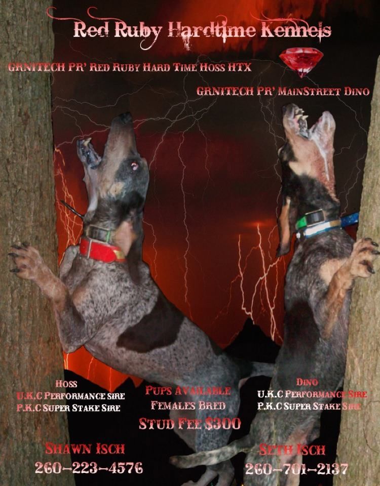 No problem we feel Hoss is a reproducing young staring dogs and dogs with grit and natural abilities traits to find coon and tree coons the right way.