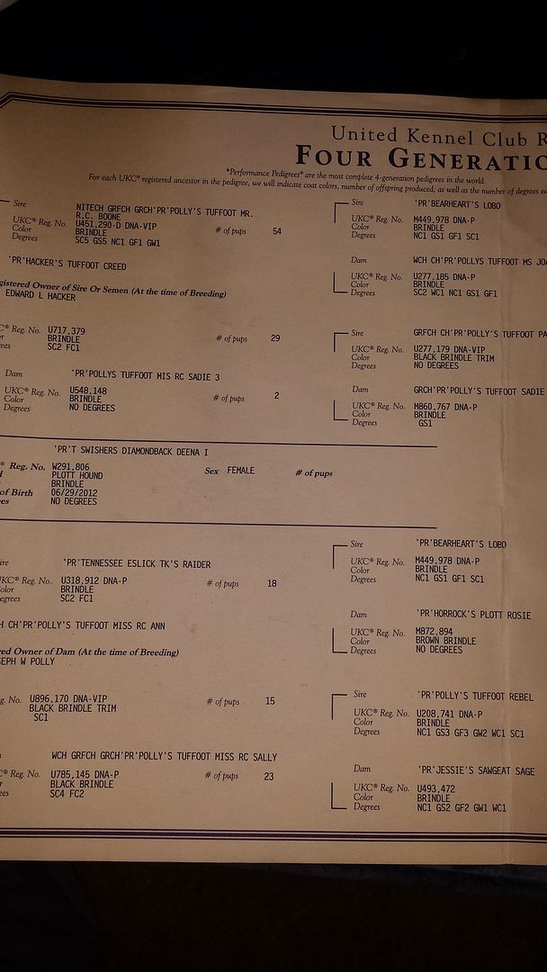 In roughly ten days will have pups. Line bred to NiteCh Pollys Tuffoot RC Mr Boone. My female is a truck to tree bear dog and a finished hog dog. Will tree a coon. Bred her to Beck's Major. 250 $ wormed and all shots. Cell # 7405774666