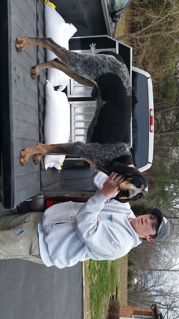 sire is a nice track and tree dog with a good mouth,,his dam I owned was a fest track dog and nice tree dog,hard to find blood like this in a pup.ive got references on his litter mates doing wat they should in timber.this pup hasn't been sitting in the kennel all his life,he got worked hard most of his first yr and very impressive.you won't find many louder than him or that look better than him.future stud and nice dual purpose young male.has the brains and ability to lead someone's kennel.