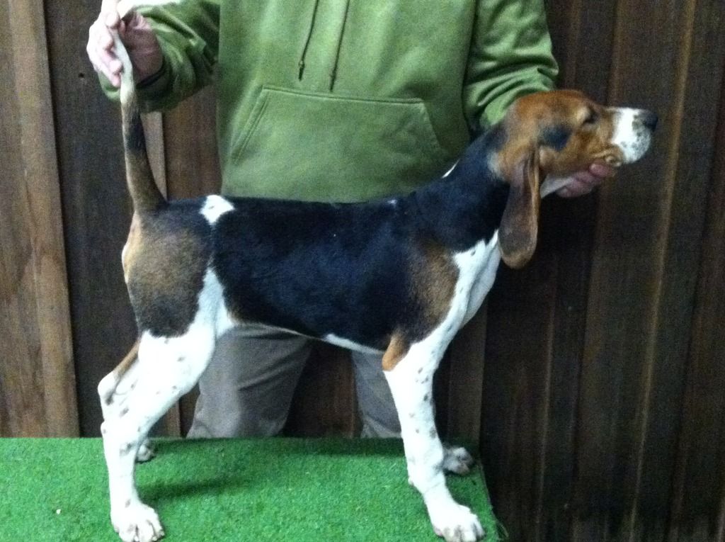 She has several wins in UKC and is in excellent hunting shape right now(being hunted in 3-5 nights a week) She is ready for the hunts. She placed 5th in a UKC Qualifying hunt which Qualified her for the UKC World Championship and another win she place 2nd with a score of +450. She has atleast 2 other placements. She also has show wins She will not have any trouble making GRNTCH and GRCH or you can hunt her in PKC.