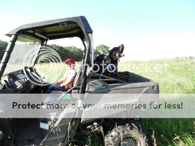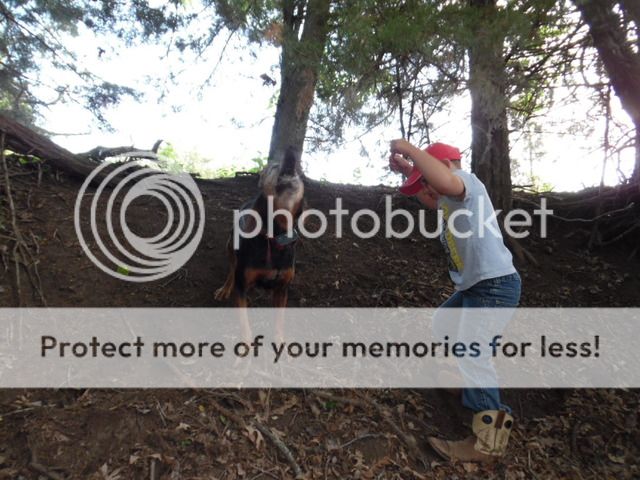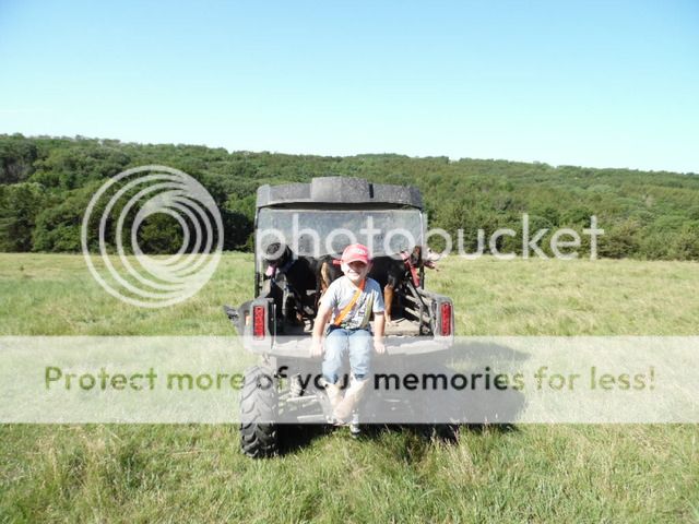mama was working this morn and me and little guy had easy day planned. check cattle, fences, and waters couple times and otherwise stay cool for day. at 7:30 he got up and all worried i didnt hunt last night. he says i wanna go coon hunting... i thought for second and said i do to! loaded minn and trix in buggy and by 8 oclock hitting some places hoping for good strike to run. daylight hunting hit and miss ive done it a bunch but hoping for something especially with mulberries ripe. got 3 different strikes that dogs tried and couldnt move track so called em back on each one before blew out of country. tough conditions with already warm and sun shining hard. also wanted to contain hunt with little guy along and not get way in somewhere. pretty much gave up and finished checking cattle when got best strike had heard yet. dogs moved it into deep ravine slowly and no doubt why could track better where sun hadnt hit. they ended up treed in brush pile after tracking through cedar infested hilly hell hole. walk in was tough with all thorny stuff and sharp cedars with little guy, but him being short was plus getting through it!!! not one complaint. this was first hunt he come on without mom along. usually they stay at vehicle or in open place when gets thick till i get dogs.