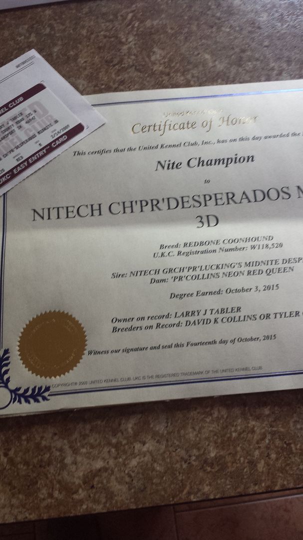 NT CH PR COLLINS NEON RED DOC DA QUEENY -grch ntch desperado/queen