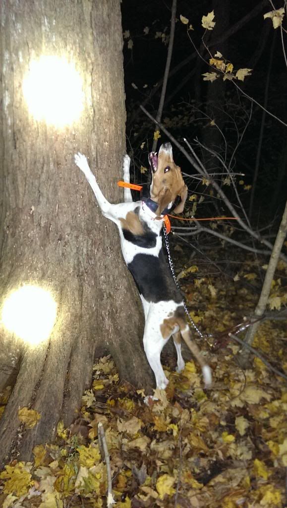 We have a full sister of Dan ( the chop mouthed male in this video) Bred to Ricky's GRANDNITECH, Silver Champion Skuna River Bart. The pups should be born April 6th. Dee Dee ( the mother) is out of NITECH Outlaws High Voltage, Making her a Granddaughter of Skuna River Fred, Big Timer & Duel Grand Tri Colored Red Hot Pepper. Dee Dee is a cold nosed, hard track driving & hard tree dog. She has never ran or treed any off game. Four of these pups are already booked, If you are interested in one send me a P.M. or call 731-727-4356, Thanks