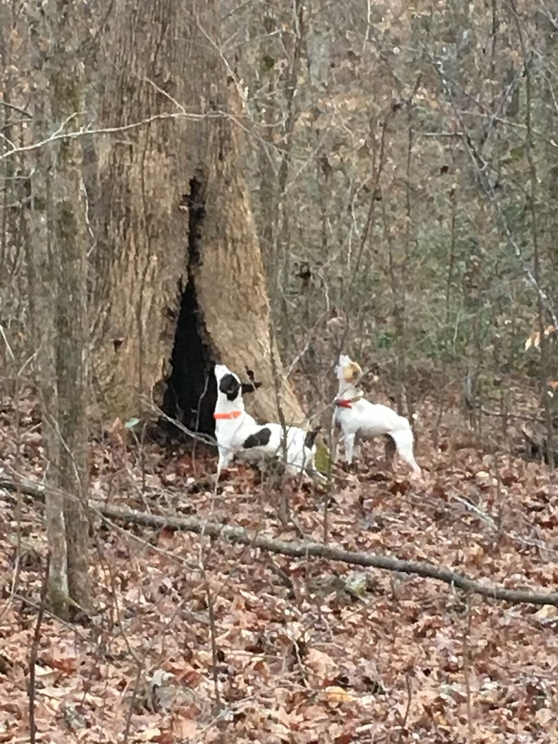 Had a fun hunt yesterday afternoon but man the squirrels out done us. Made at least 6 dens but did tree a few on the outside but they timbered out quick and hit dens too. Pistol and Mattie worked well together and i enjoyed watching and hearing them tree.