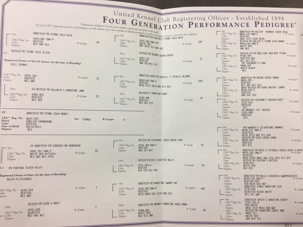 Gr Nt Ch Pkc Pr Stone Cold Money was bred to Buck tonight 3/2/17. Money was a 2014 Pkc world quarterfinalist and a top jr Pkc ss. She's a dark redtick that is quick to get it done. Call Brad Witt to book a pup. +1 (419) 309-2566 Toledo Ohio
