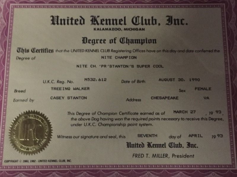 I am reaching out to this board in hopes of finding any information on "Stanton's Super Cool". My good friend Casey Stanton from Chesapeake, Virginia owned this dog and said she was the greatest coonhound he ever had. He coon hunted for 30 years, and the day that Cool died, he quit coon hunting because he knew he'd never find one better. I would like to know if anyone out there has any information on this dog, or knows any dogs that go back to Cool somewhere in their pedigree. I am not sure how to go about obtaining this information. My hopes would be to eventually find a puppy that has Cool in their pedigree. Any information would be greatly appreciated.