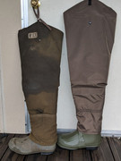 First image is a pair of my old froglegs with a heavyweight chap sewn and sealed like wick from the early nineties and a pr of burlys sewn like wick for a customer here!