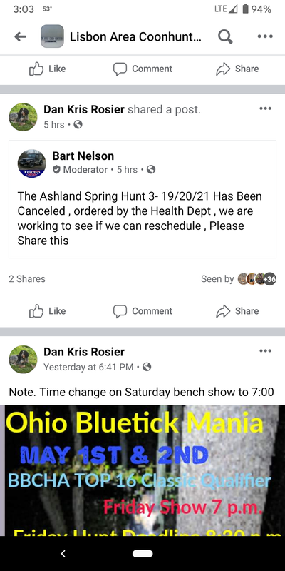 Go look on Bluetick section at top of this page. Not the classifieds, top breeds. It was also posted on the Facebook BBOA page. And event cancellations on this forum.