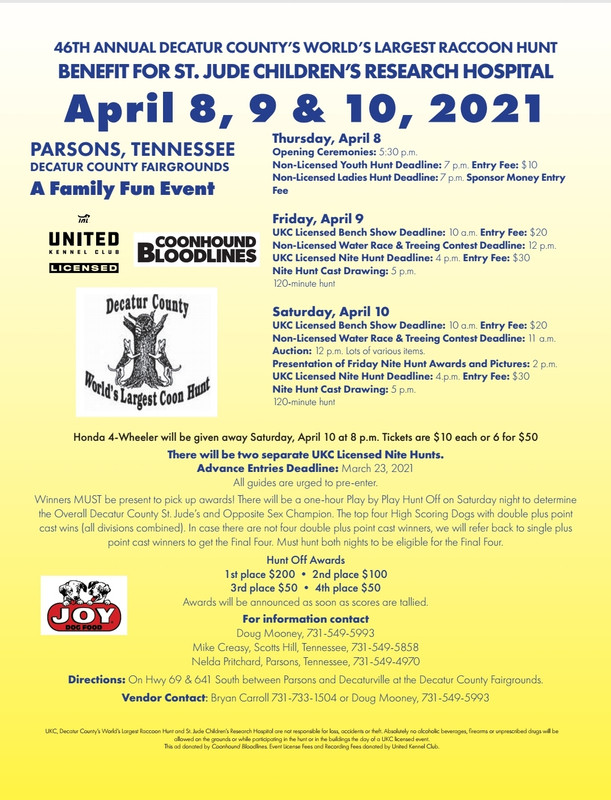UKC Forums : Powered by vBulletin version 2.3.0 UKC Forums > Departments > UKC Coonhounds > 2021 St. Judes Benefit with Results