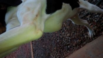 The one adverse effect from his condition (and you can see it in the pic) is that He needed a bigger opening in his dog box due to the extra depth of his chest, thus causing his front nipples to constantly rub against the bottom of the opening in his box causing his two front nipples to enlarge. The constant rubbing was from every time he went into or came out of his box. At least that is what I think caused it. I say that because after I moved him to a box with a bigger opening, the redness sort of went away but the two front nipples still remained large.