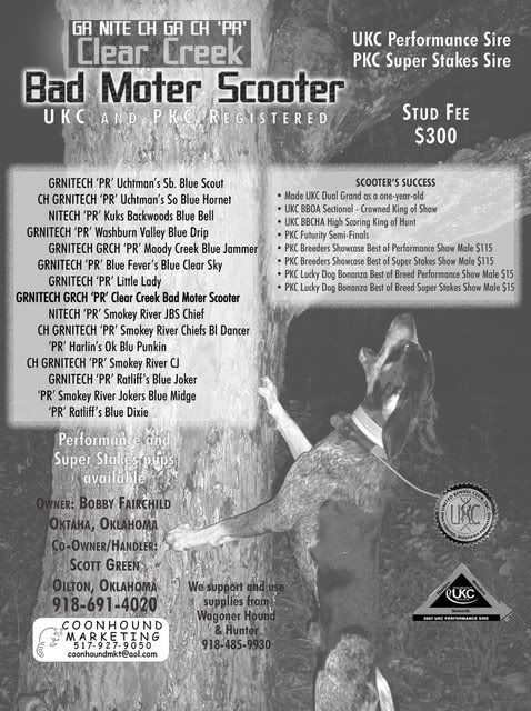 5)GR.NITE CH. STILL'S STYLISH WITCHDOCTOR-----WAYNE CAUDILL, LONDON,KY-----------$100 minimum