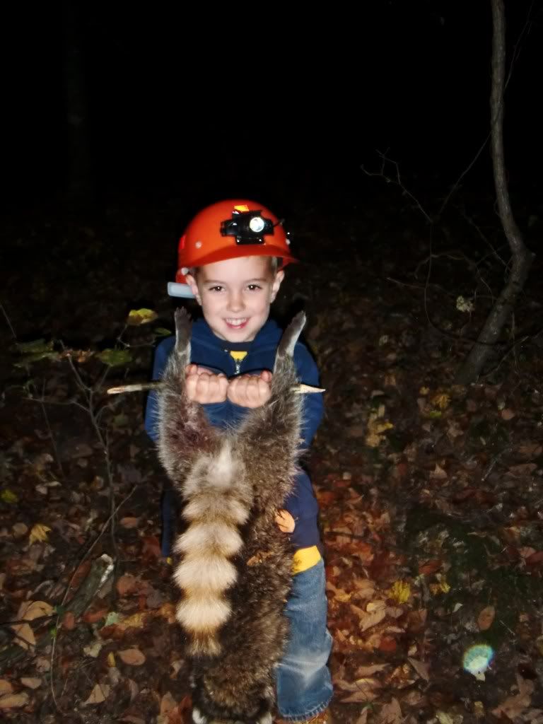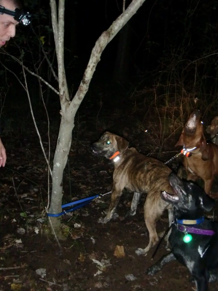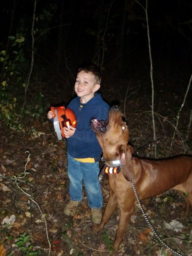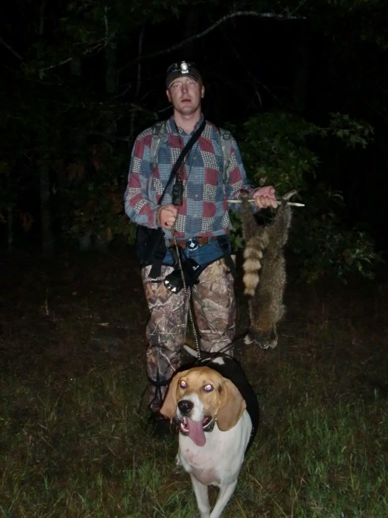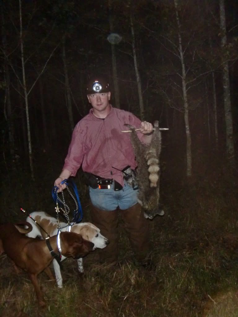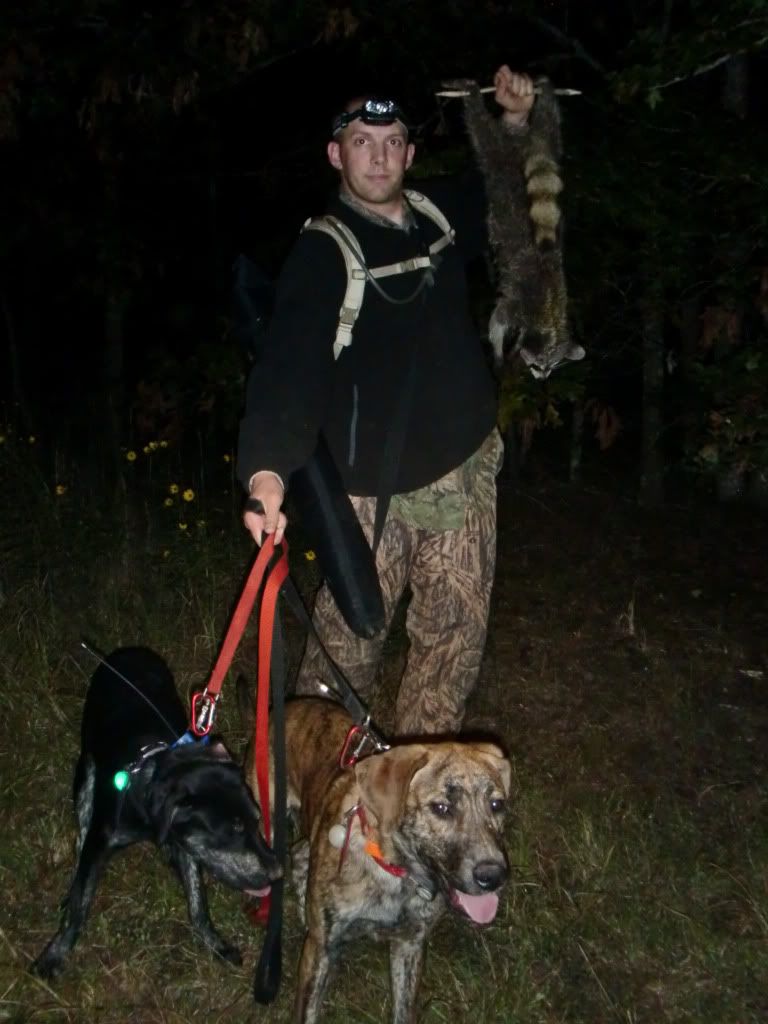 Took the Molly dog out with Duke and Jack. She did a good job of getting out and doing some investigating at first. I had to go collect up my dogs as they had taken to the hills....once I set them back out Jack struck a track and Duke chimed in. When they treed Jack treed for real, he rolled over and started to chop for me. When we got there he was stuck to the tree like the old man. I was super proud of him.