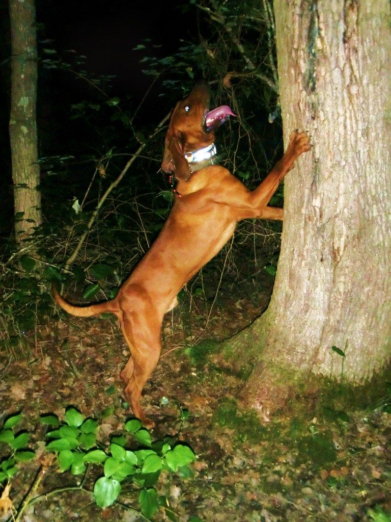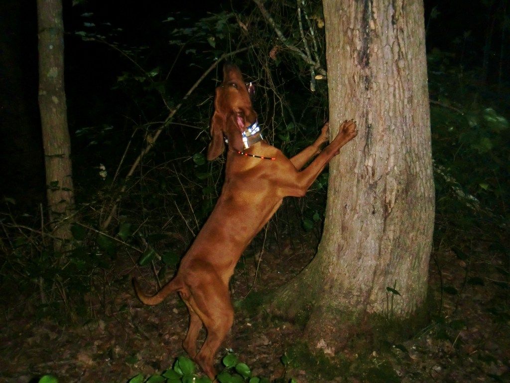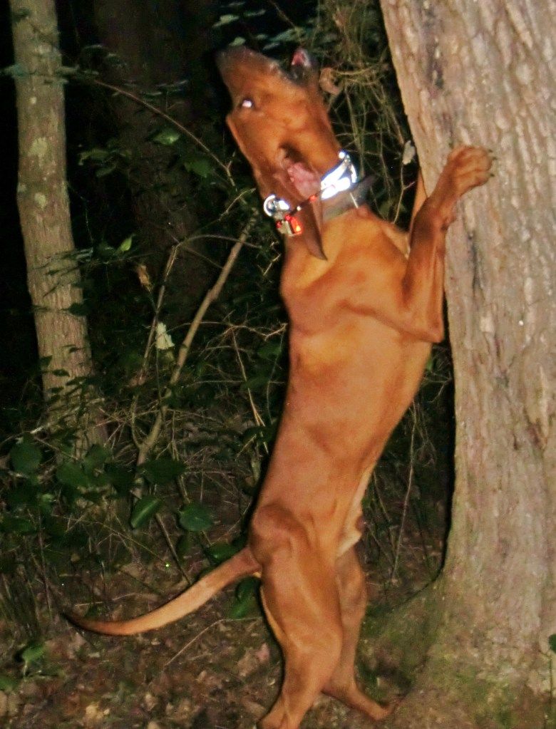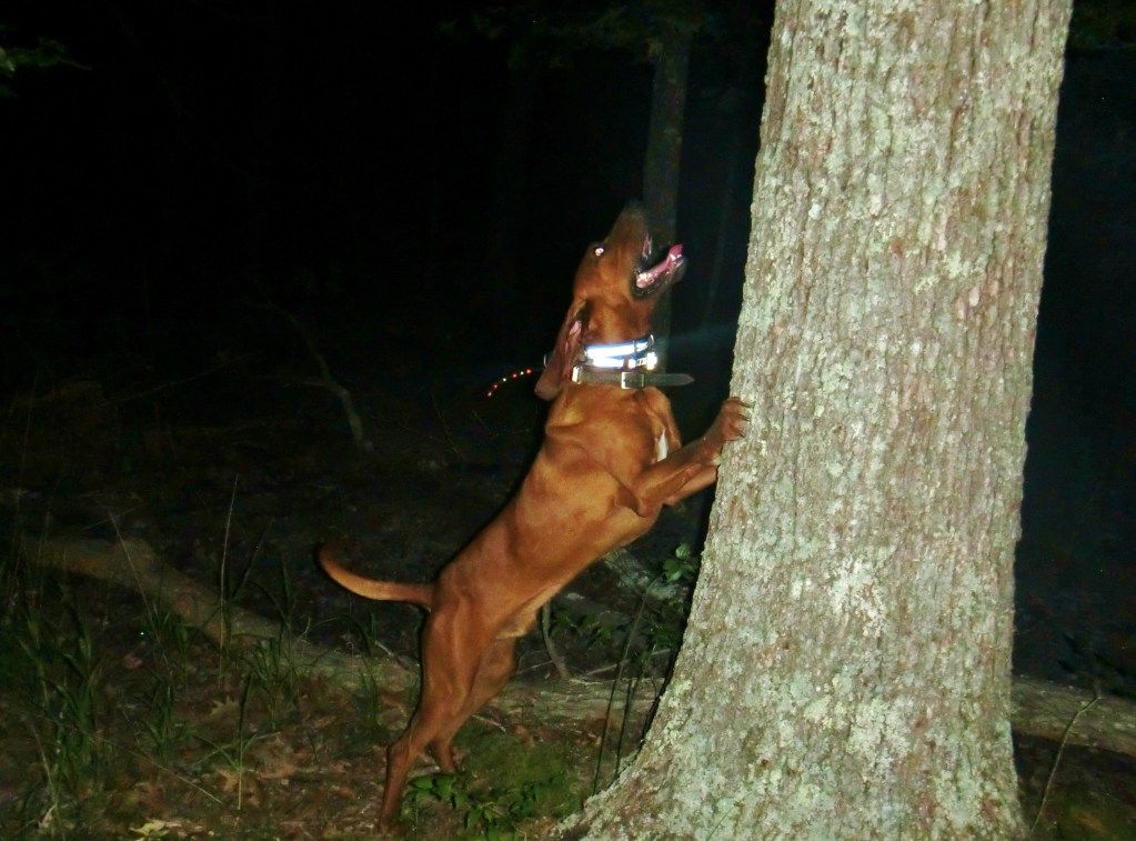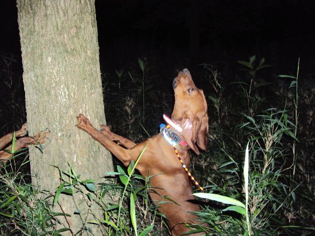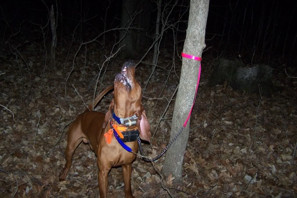 They blew off the leash side and side was runnin the creek about 100yds out when jo-ann yelped out for 1st strike, and Roxy put in right with her. The track ended quick with Roxy locatin and gettin 1st tree, with Jo-ann tryin to tree right behind her.
