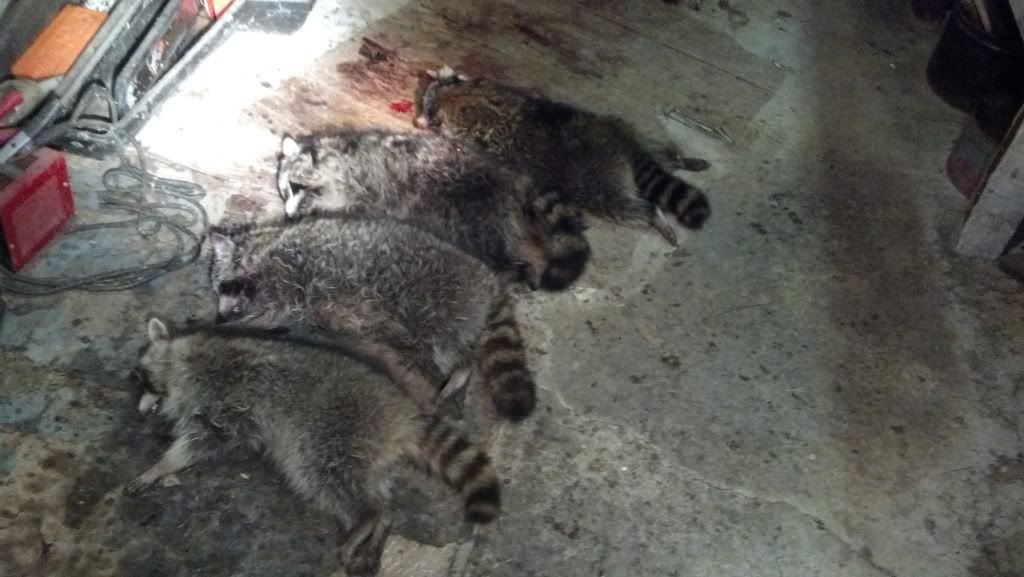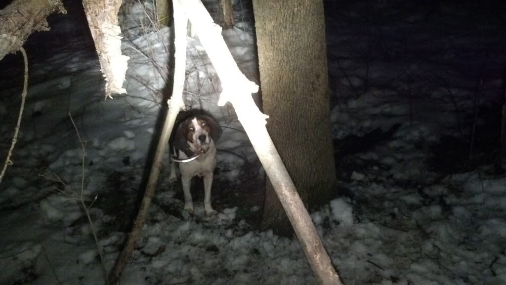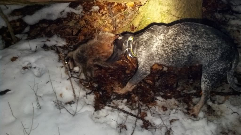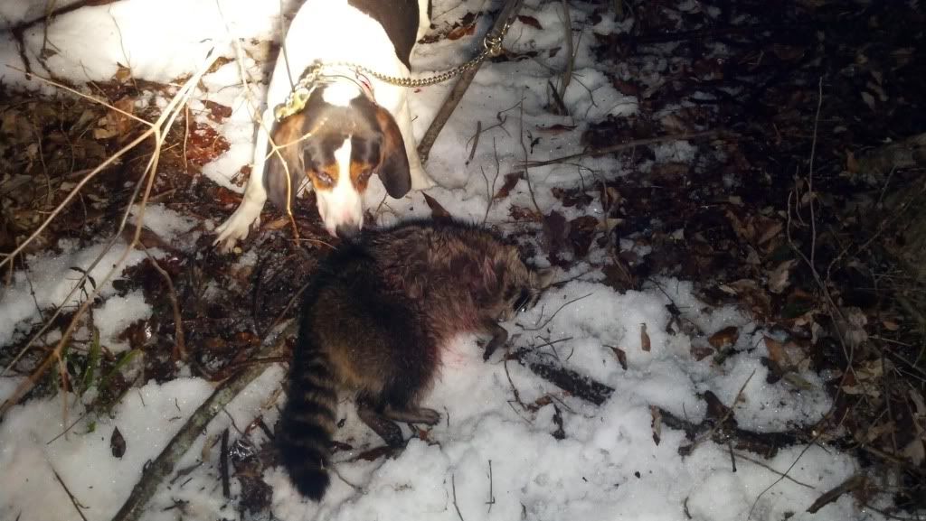 took my 9 month lockbox pup out after midnight, 1st woods treed a coon and a den, next woods he got treed right by a house so i went and grabbed him out of there quick, last woods he treed a coon then made a slick, then treed on a den. last woods i seen 4 dead coon laying around. hated to see that its one of my best places to hunt.