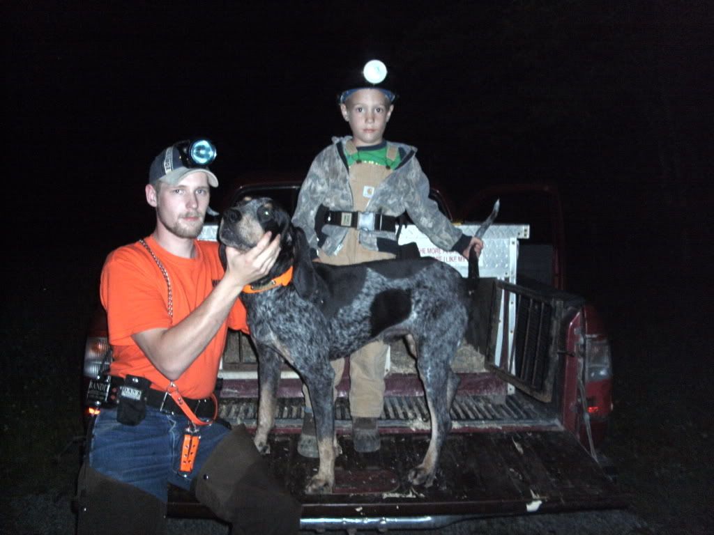Put Ole Stepper in a hunt last night, three dog cast, two dogs treed, Ole Stepper went on up the holler and split treed, we found their coon and couldnt find Steppers, then on the next drop, got second and first but couldnt find the coon, got beat by another fine hound, we will get them next weekend, Danny Joe and I went on hunting after the hunt, Ole Stepper treed one by his self about Daybreak.