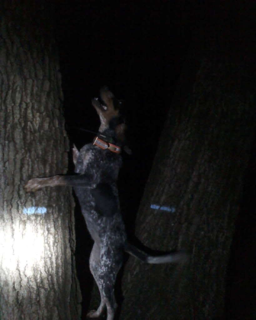 150 yards and treed again, john 2 dog stayed put and there was a coon there, hammer also had a coon , but didnt like him livin the first tree to be by himself