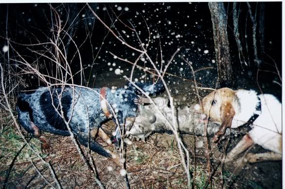 We had a lot of fun hunting these two dogs together. Belle would tree a coon he couldn't open on in bad nights, but he was faster than her on a red hot coon. I never saw him outrun on his kind of coon track. He was a cutting, slashing track dog.