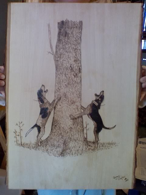 I CAN ALMOST HEAR HIM TREEING. BY THE WAY, DONT KNOW WHO THE DOG IS, QUINCY JUST CAME UP WITH IT.