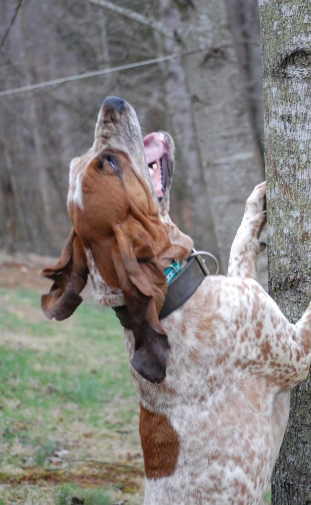 The walker dog is out of Edd's White Oak Tiger (Champ, Zip, Sackett) and Edd's White Oak Fancy (Old Factory, Bear Crk Rib, Stylish Rank, Pacman, Bozo, Finley River Trap) There is no mistake when this dog gets treed.