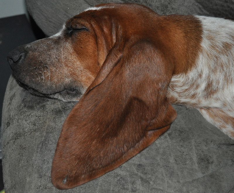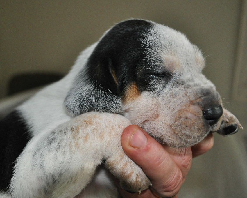 Close to equal messures of Treeing Walker, English, Bluetick and Bloodhound (the Bloodhound actualy messures 31.25%) 25% from the Dams Side and 6.25% from the Sire's Side.. Both Different Strains of Bloodhound.. The 6.25% Bloodhound on the Sire's Side Reduced the Bluetick to 18.75% ..
