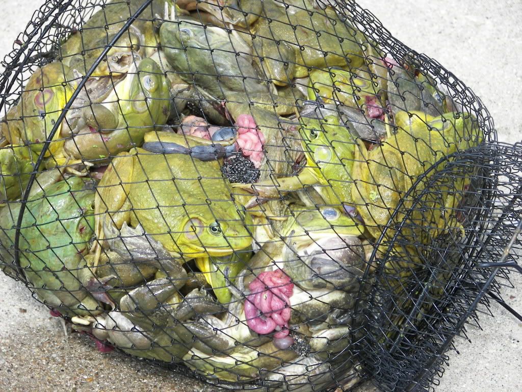 man i miss grabbin frogs with my pops,,,,,, he'd run the motor and spotlight and id be on the front grabbin them,,,,,,, he would get so tickled, ever time id grab one the pee half way up the bank,,,,,,,only lost one all the years we grabbed,,,,,,,, down on a small creek one nite below a lake i was in frog heavan..... saw a nice one ina circle of reeds,,,,,,, used the trollin motor layed out and was reachin for the frog,,,,,,, heard a deep hiss,,,, eased the lite up,,,,,,,,gator mouth,,,,,,,,i just pushed backwards in the sand and raised up and eye balled the gator,,,,,, maybe 7 ft,,,,,,,, needless to say,,,,,,,,i was done for the nite,,,, 30 in an hour and a half was good enuff,,,, think that summer i got right about 90 in 4 trips,,