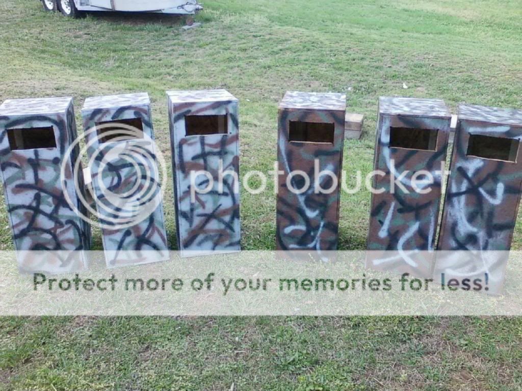 fester, your den boxes are built on the classic style, deep and narrow, like a hollow tree. it seems it would be better if you built them as you did but mount them horizontally. that way the coon would have much more room. as it is, the coon rest at the bottom of a well. it takes a lot of lumber the usualy way. if you make it, say 14' x 14" and three feet tall, that's a lot of wood. and the coon still have little space. i built one from scrap 2' x 12" treated lumber, three feet long but always thought it was too narrow. then it occured to me to mount it horizontally. i haven't done it yet but that's the way i'm going. what do you think:"