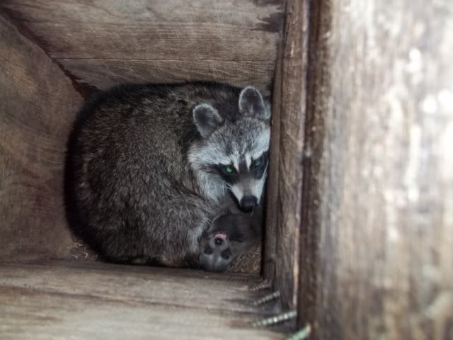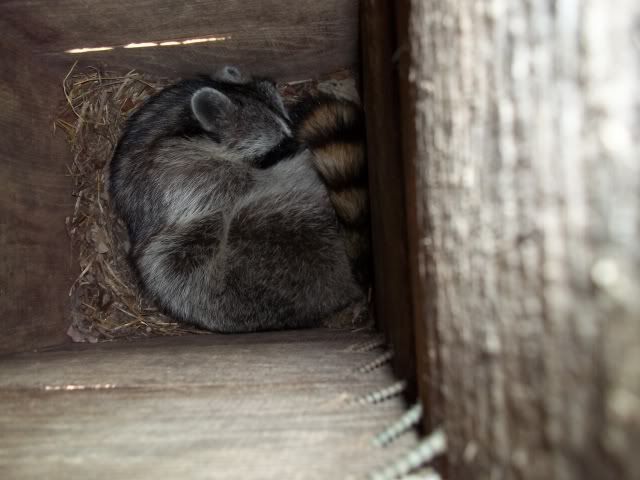 I just hung this box a couple of months ago and already it has a coon in it. If this is a sow, you can clearly see she would have plenty of room.