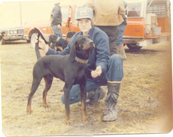 Dad had dogs ever since I can remember but this one was special and the first dog that I will never forget. Nightriders Crow was out of Signal Mtn. Stud and his mother was out of Doyan Morelands Black Man. Crow was so perfect it was freaky. As you can see he was just a beautiful dog, big bawl mouth on track, steady chop on tree. He had hustle and drive that was rare in this breed back in the 70's. and straight on coons and would tree squirrels for me in the day time. Unfortunately he was killed at a little over a year old by hanging in a brush pile by his collar.