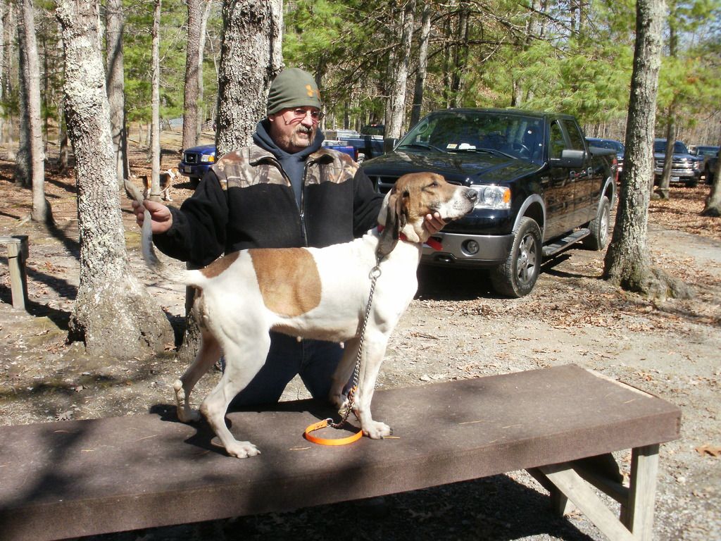 Wow what a day, every so often I like to try and show a little kindness to my fellow man, well today was one of them. It all started early this morning, Bond and I had made plans for a little trip to Clifton Forge, Va. for a show, however a small problem, Wendell was not sure if Jamie would let him go, so I met Wendell at the shop this morning and had a long talk with Jamie, she said it was ok this time but only if I would keep her little teddy bear out of trouble and get him home. Mission Completed. Then he ask me to show his young Redbone Female, I told him he was now pushing it,(Corky really thought that was funny me leading his dog) but I did it. Which I enjoyed, but remember this was one of those good days.