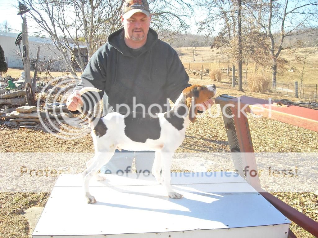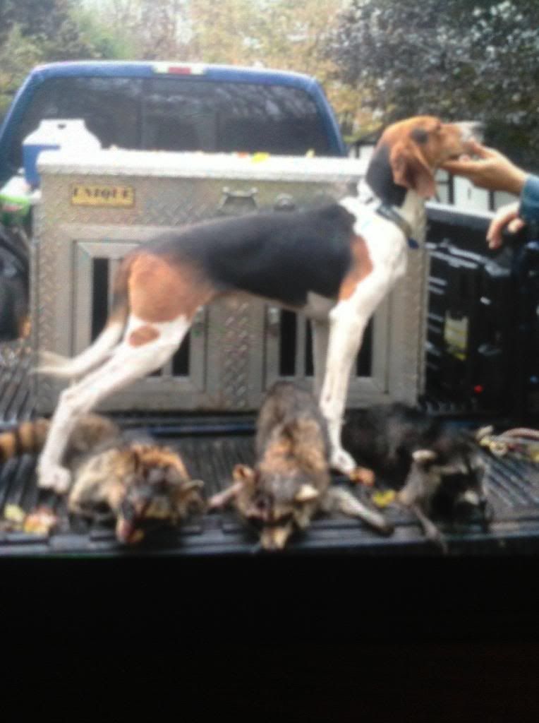 Well I got back home last night, what a weekend! Took Bliss to the 2014 49th Annual Grand American Coon Hunt. Was kinda nervous about this because she has never stepped foot in the swamp, she's from the mountains of east Tennessee. Friday night I had a really good hunt she looked like a million dollars just wasnt seeing coons, several dens. On the last drop she split off and treed a coon the last 51 seconds of the hunt. Won my cast. Saturday night I decided I was gonna go big or go home, I had everything to win and nothing to lose, not gonna lay back and play it easy like Friday night. Unsnapped her and she took off like a rocket and jammed a coon on them turn em out again and the same thing happened, keep in mind I was hunting against 3yr old plus dogs and 2 of them were from that area. There were 3 cast winners in my cast including me so one guy decided he couldnt let an out of state 18 month old female beat him. He already said something about it sounded like they were getting rough as we were walking in to the first tree when we were 200 yds away. That's just the way mine trees sometimes she will have that good steady chop then she will throw some dying screams in there too, that's just the dang trackman side of her. So when I got to the 2nd tree I seen the male dog jump up on her and she wasnt gonna have that, she screamed right in his face and went back to treeing so he said did you guys see that again?!? Mean dog we got a mean dog! He grabbed his dog and they scratched me, during this time bliss took off to the other trailing dog before I could grab her and treed another one right out from under that dog! We got there and I grabbed her and took her back to the truck, I was heated. On just the 1st two trees in the first 38 mins of the hunt I had more points than the cast winner at the end of the night. I was sick, if she would have done that one more time in the 1hr 22mins that was left and won the cast that would have put me in the final 4! Seems like they will do anything to get the best dog out! All of them boys knew who the real dog was that night. All we can hope for is better luck next time. Thank You Darian for such a nice pup and keeping in touch with me. Mike