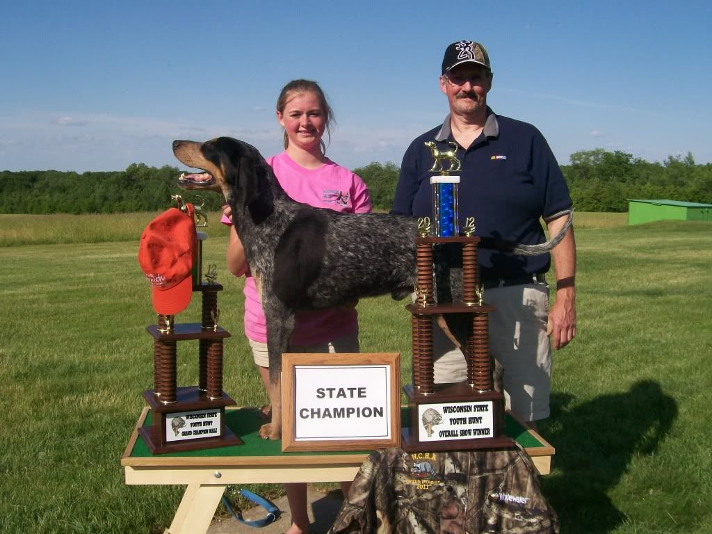 CH PR Mad Dog Big Casino (2013 Illinois BBOA King of hunt, high scoring dog, First place registered Friday and Saturday night, 2016 Zone 1 Blue frost memorial King of Show opposite sex, BMOS friday and Saturday, 2017 Reunion Ch male Thursday and Friday, 2017 AL State Championship King of show)