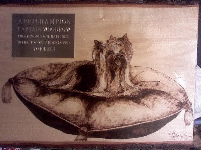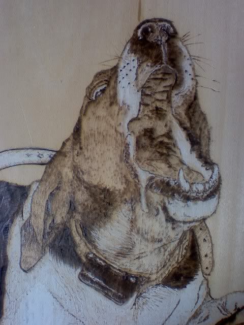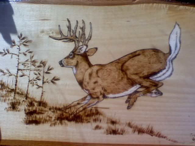 IT IS BURNED ON BASSWOOD, AND COMES COMPLETE WITH GLOSSY FINISH, WALL HANGER AND SHIPPING IS INCLUDED!!