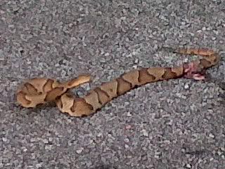 Either you were so scared you were shaking pretty bad or you're a terrible shot because I know you were aiming at that snakes head and hit way back!!!! LOL just kidding........good job.